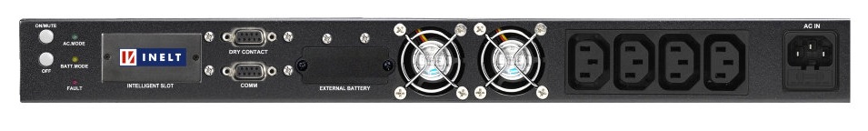 Линейно-интерактивный ИБП INELT Intelligent II мощностью 600ВА - 1000ВА в корпусе Rack Mount предназначен для защиты компьютерного и телекоммуникационного оборудования, установленного в 19” стойку. Синусоидальное выходное напряжение в режиме работы от батарей позволяет подключать нагрузку с трансформаторными блоками питания. Широкий диапазон входного напряжения позволяет реже использовать энергию батарей, что продлевает срок их службы и дает возможность эксплуатировать ИБП в регионах с плохим качеством электропитания. Также возможна поставка дополнительных аксессуаров для вертикальной установки (”tower”). Небольшая глубина корпуса позволяет устанавливать ИБП в компактные настенные шкафы, что делает этот ИБП незаменимым, например, для провайдеров телекоммуникационных услуг, нуждающихся в стабильной работе узлов связи. Intelligent II 600RM/RMLT, 1000RM/RMLT