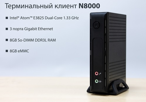 Компания D-Link объявляет о начале поставок терминального клиента N8000. Устройство выполнено на базе современной высо-копроизводительной аппаратной платформы с двухъядерным процессором Intel Atom и рекомендуется для применения в крупных корпорациях, финансовых организациях, учреждениях образования, здравоохранения и в компаниях малого и среднего бизнеса в качестве рабочей станции для локальной работы или тонкого клиента для удаленного доступа к приложениям и виртуальным рабочим столам. Построение рабочей инфраструктуры на базе терминальных клиентов N8000 позволяет упростить администрирование, сократить затраты на обслуживание рабочих мест и существенно снизить риски хищения, утраты и подмены информации.
